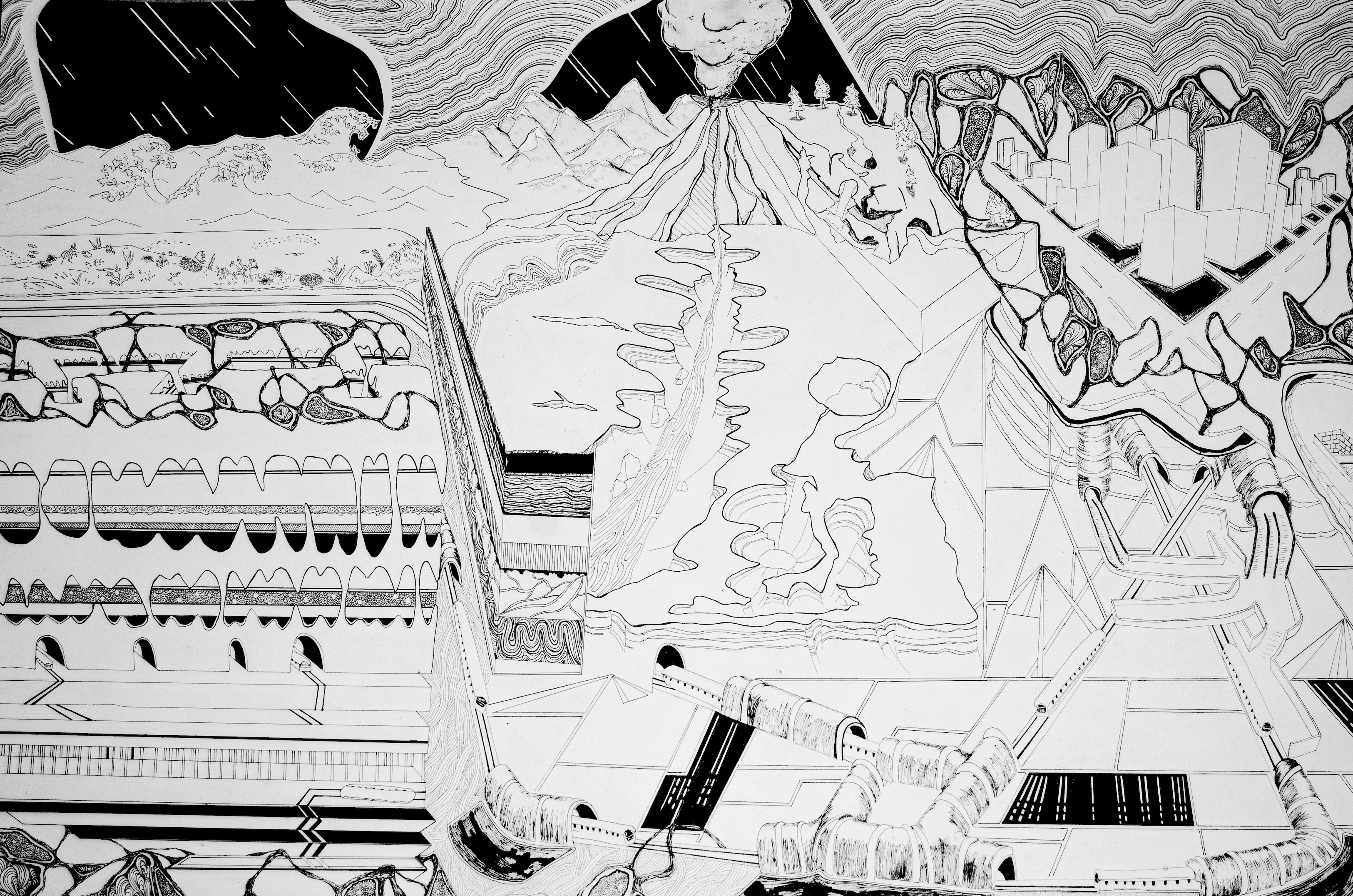 ink, pen, pencil on paper 50*70, 2020.